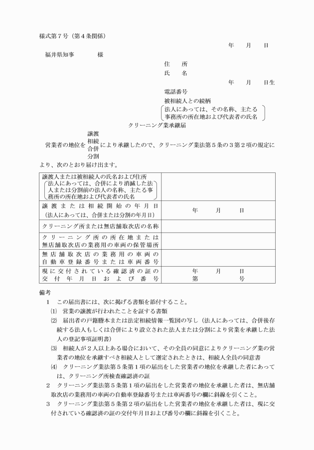 クリーニング業承継届(様式第7号) | ||