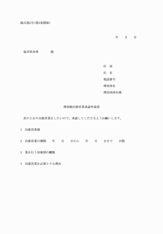 2 法第11条第2項の規定による届出事項の変更の届出は、当該届出事項に変更を生じた日から10日以内に、理容所開設事項の変更届(様式第5号)によりするものとする。
