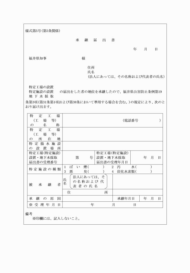 第1節 届出書の様式等(第5条)