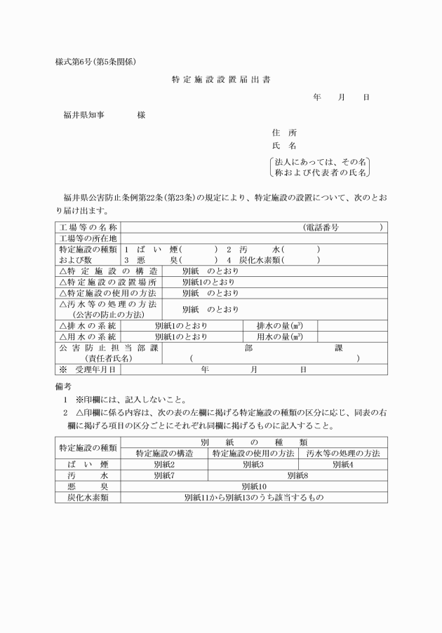 (特定施設の設置の届出)