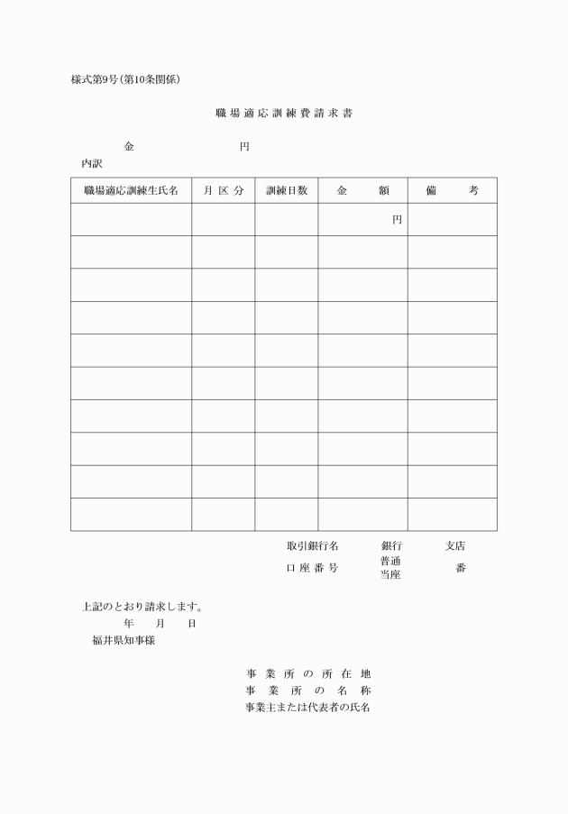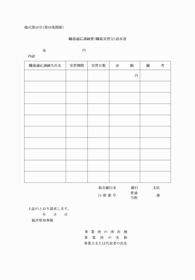 第10条 知事は、受託事業主に対し、職場適応訓練に要する費用に充てるための職場適応訓練費を支給する。