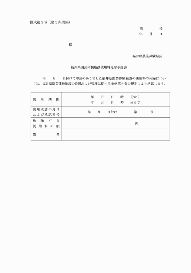 福井県園芸体験施設の設置および管理に関する条例施行規則