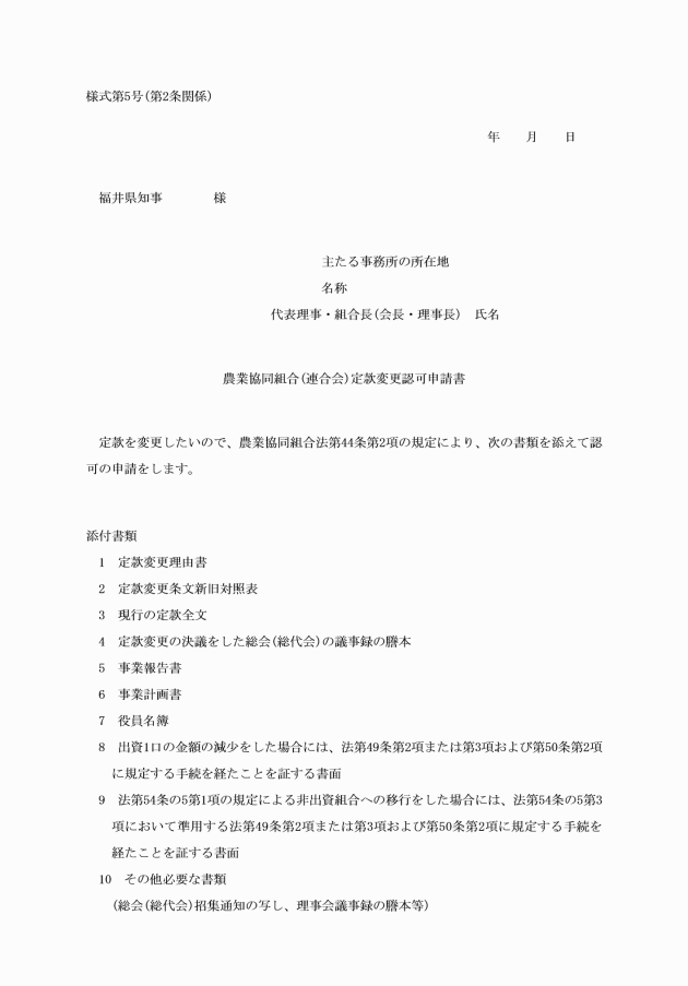 (9) 法第44条第2項の認可の申請 農業協同組合(連合会)定款変更認可申請書(様式第5号)