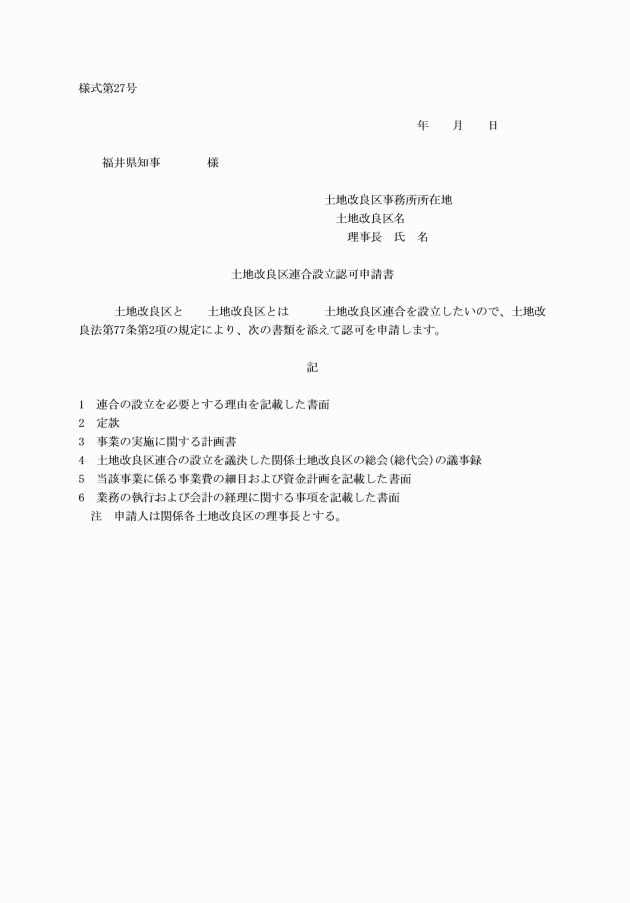 土地改良区連合設立認可申請書(法第77条第2項) | |