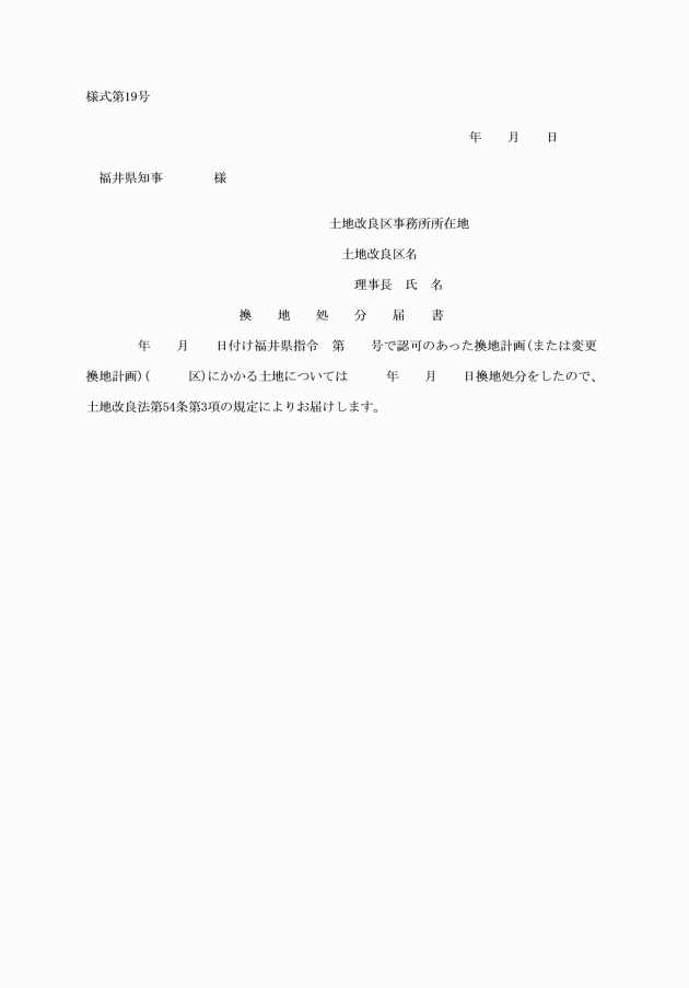 土地改良区が行なう交換分合計画認可申請書(法第99条第1項) | |