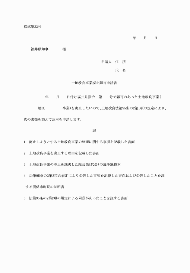 土地改良事業廃止認可申請書(法第95条の2第1項) | |