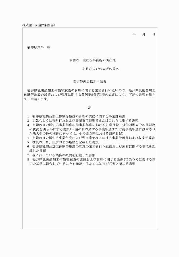 福井県乳製品加工体験等施設の設置および管理に関する条例施行規則