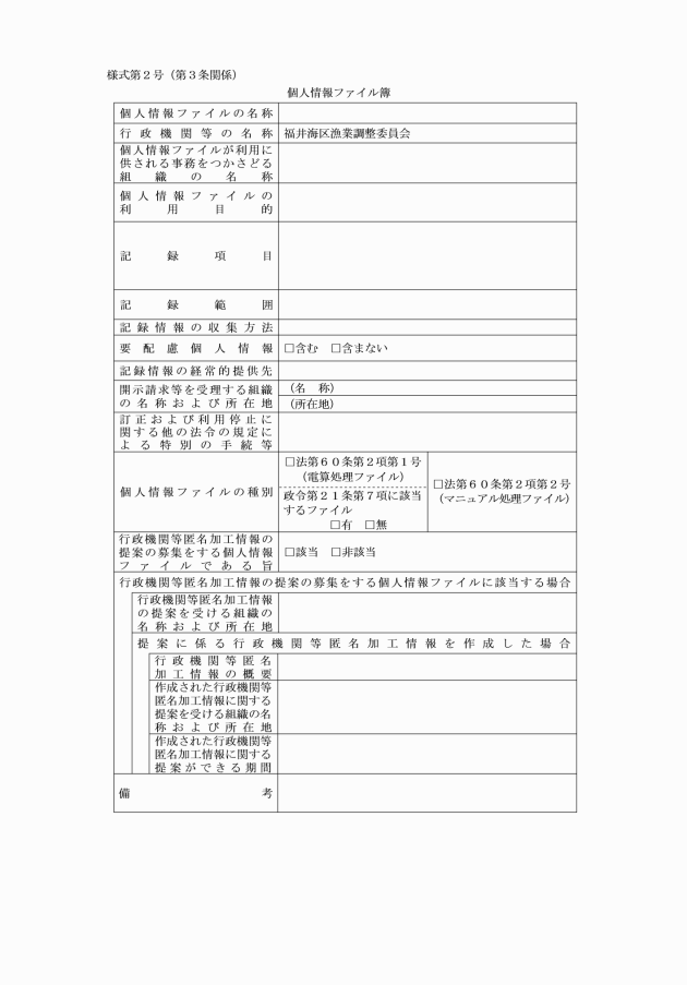 第3条 法第75条第1項に規定する個人情報ファイル簿は、個人情報ファイル簿(様式第2号)によるものとする。