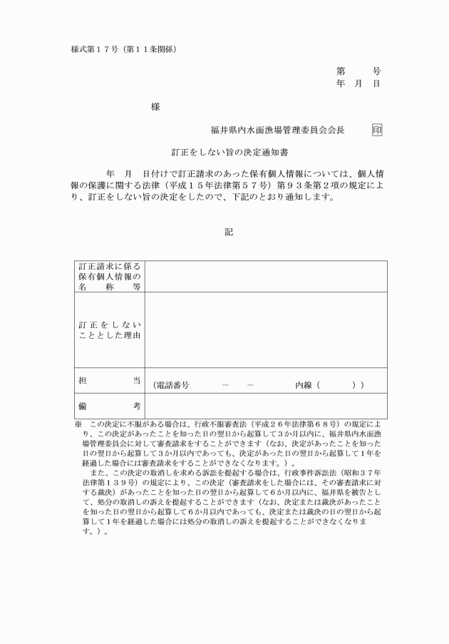 2 法第93条第2項の書面は、訂正をしない旨の決定通知書(様式第17号)とする。