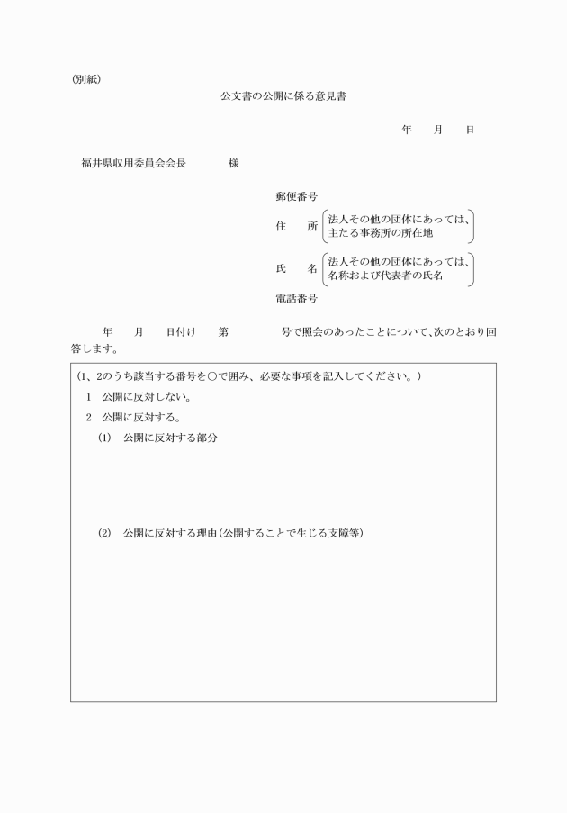 (1) 福井県収用委員会が保有する機器およびプログラムを用いて用紙に出力することができる電磁的記録 当該電磁的記録を用紙に出力した物またはそれを複写した物の閲覧または交付
