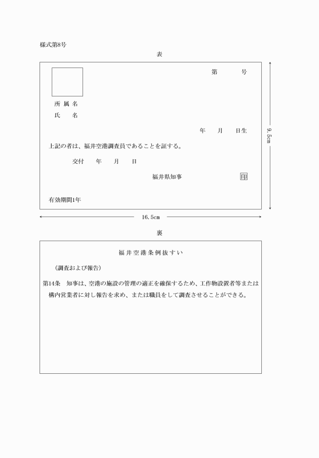 第1条 この規則は、福井空港条例(昭和41年福井県条例第2号。以下「条例」という。)の施行に関し必要な事項を定めるものとする。
