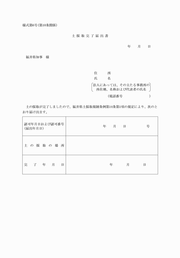 第3条 条例第4条第1項本文の認可を受けようとする者は、土採取計画認可申請書(様式第1号)を知事に提出するものとする。