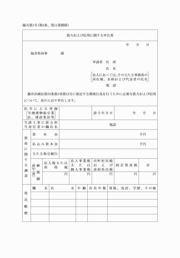 (1) 省令第16条第1項に規定する開発行為許可申請書