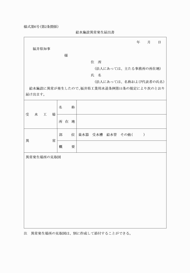 (7) 条例第12条ただし書の規定による承認の申請 受水槽不設置承認申請書(様式第7号)
