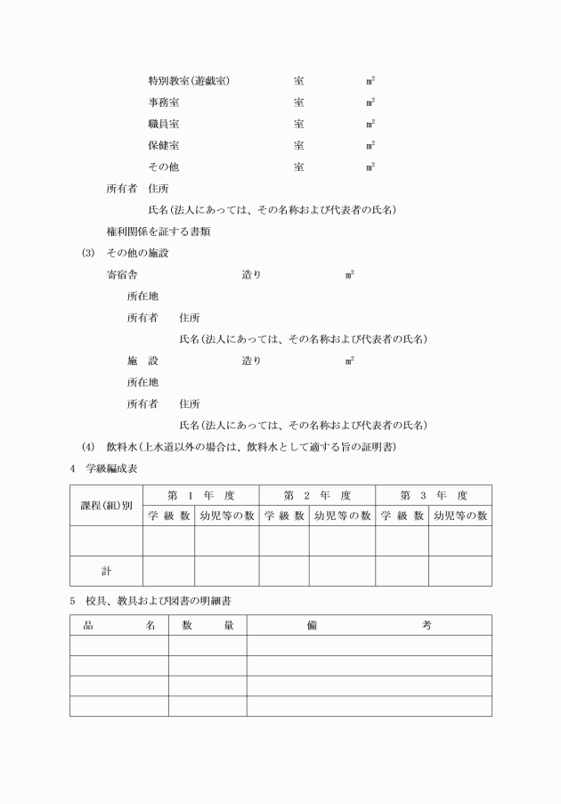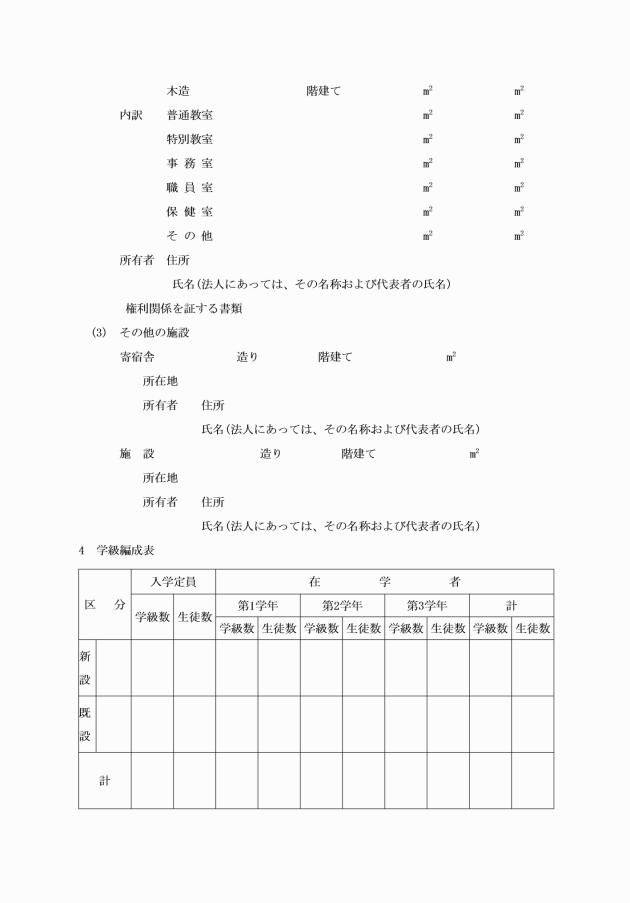 (3) 私立高等学校(私立中等教育学校の後期課程を含む。)の全日制の課程、定時制の課程および通信制の課程の設置についての認可の申請 様式第3号