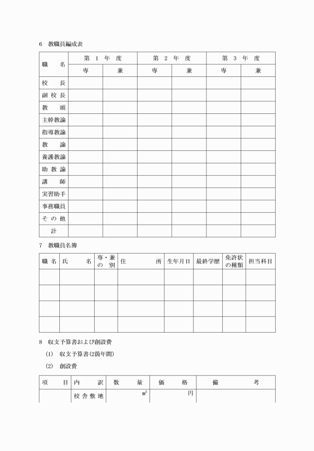 (10) 私立特別支援学校の幼稚部、小学部、中学部および高等部の設置についての認可の申請 様式第10号