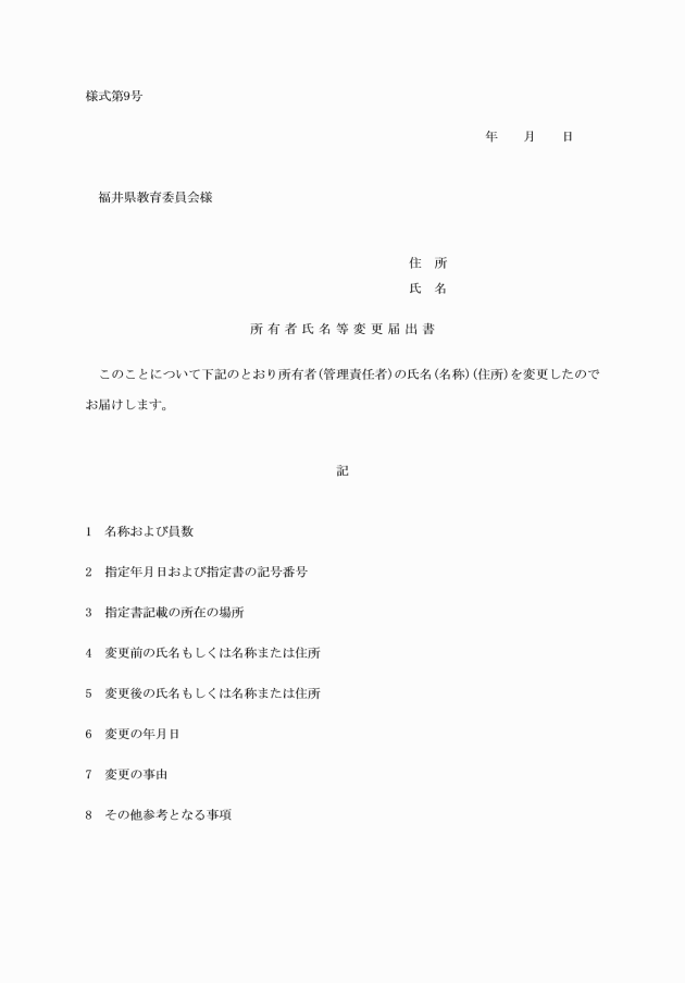 (2) 福井県教育委員会の文字(所有者または管理団体の氏名もしくは名称をあわせて表示することができる。)