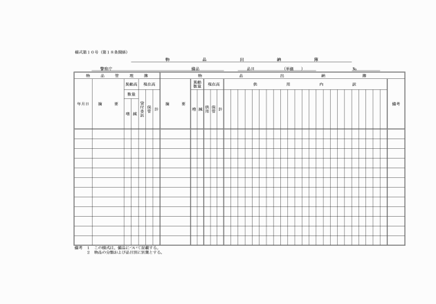 第12条 物品供用員は、供用のため物品の払出しを必要とするときは、物品供用書(様式第2号)により本部長に物品の払出しを請求するものとする。