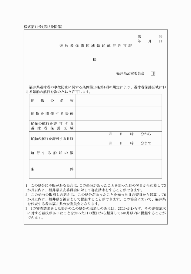 福井県遊泳者の事故防止に関する条例施行規則を公布する。