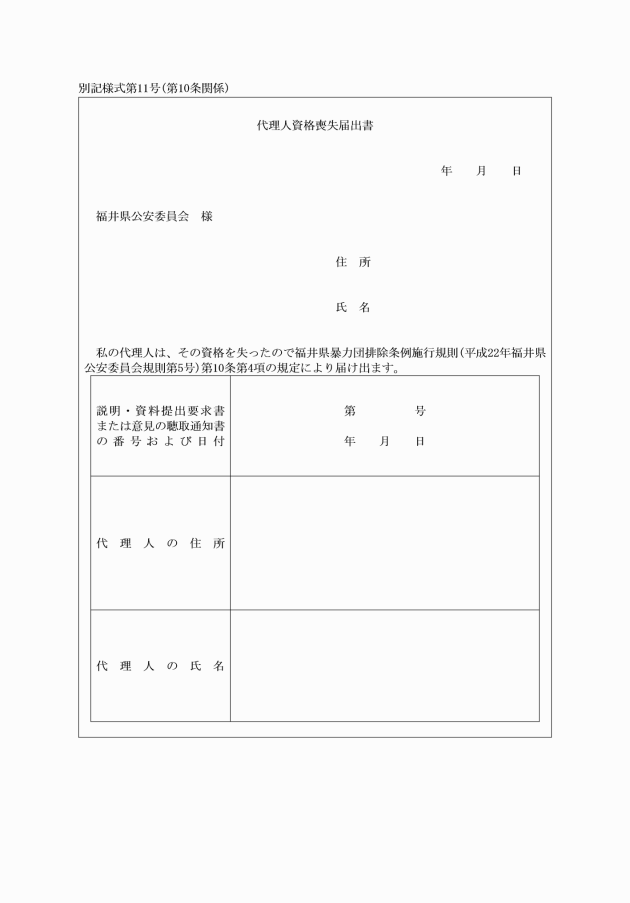 3 当事者等は、代理人を選任しようとするときは、代理人選任届出書(別記様式第10号)を公安委員会に提出しなければならない。