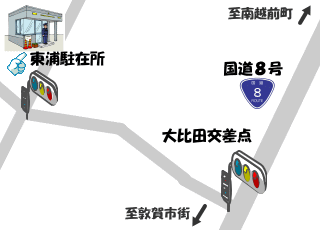 東浦駐在所 館内施設 東浦駐在所 郵便番号:914-0262 所 在 地 :福井県敦賀市大比田31-8 電話番号:0770-28-1183 受け持ち区 ・鞠山 ・田結 ・赤崎 ・江良 ・五幡 ・挙野 ・阿曽 ・杉津 ・横浜 ・大比田 ・元比田 一覧に戻る